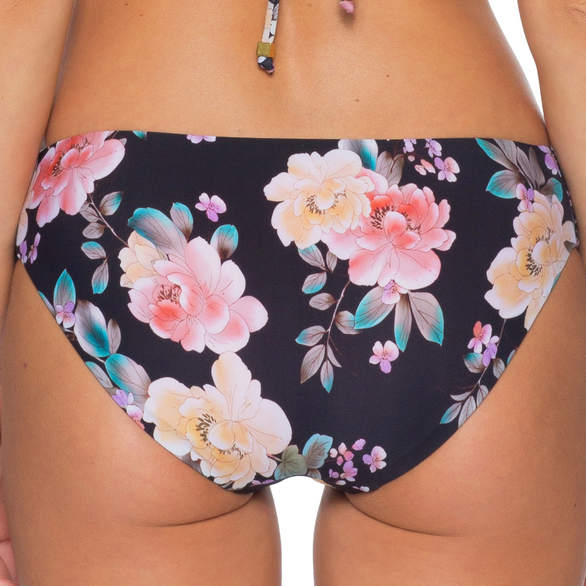 The Becca Women’s First Date American Bikini Bottom offers moderate coverage with an American cut. It features shirred tab sides. The Becca Women’s Black Magic American Bikini Bottom is great to pair with your favorite top to wear to the beach or by the pool.