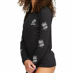 The Billabong Women’s Core Surfdaze Long Sleeve Zip Front Hooded Rashguard delivers the lightweight flexibility you love and want. This women’s long sleeve rashguard from Billabong’s Core collection is made with recycled stretch fabric and styled with graphics at the chest and sleeves, plus enhanced UV protection so you can ride all day in style.