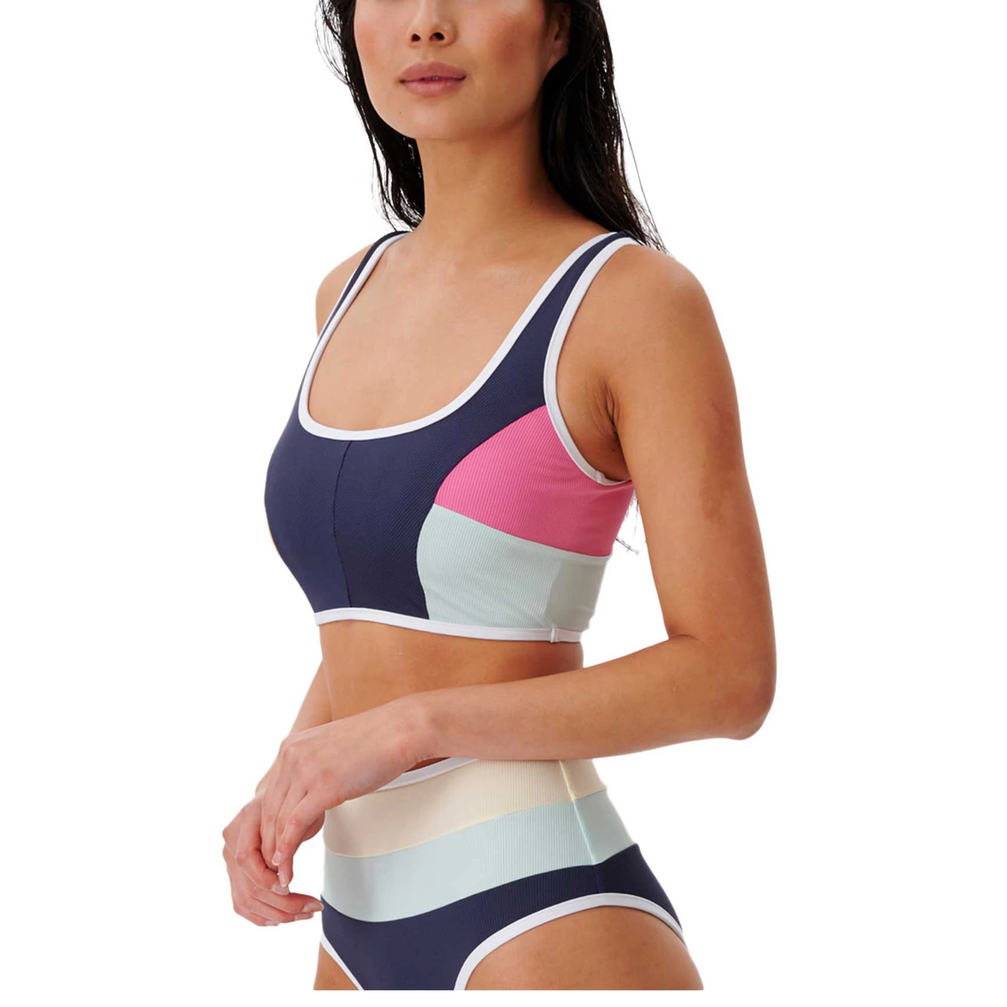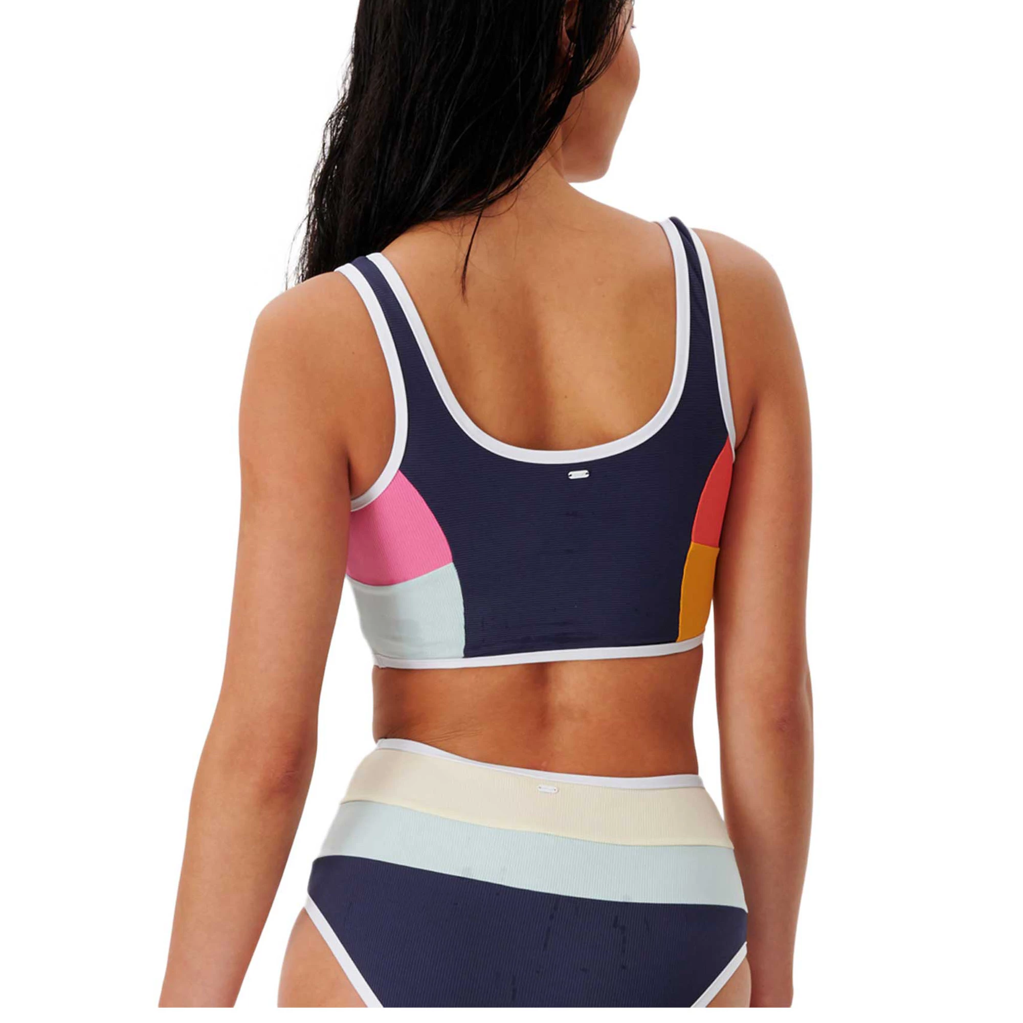 The Rip Curl Women’s Heat Wave D/DD Tri Bikini Top features the brands’ favorite Surf Revival stripe formula. This season’s Heat Wave collection draws on the most vibrant details of surfing’s eclectic heritage. It features a cute crop fit, bold color block and ribbed texture.