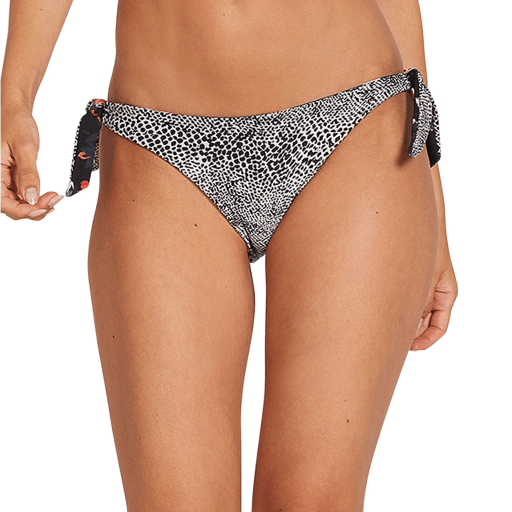 The Volcom Women’s Leaf It Be Tie Side Bikini Bottom is a reversible swim top that comes with options. As part of Volcom’s Eco-True collection, these bottoms are made with REPREVE® recycled fibers and water saving Digital Sublimated Printing for truly more sustainable wear. It features double-sided Volcom stone rivet at your side back waist opening. The Volcom Women’s Leaf It Be Tie Side Bikini Bottom takes you from sassy snakeskin to classy floral print in just a flip.